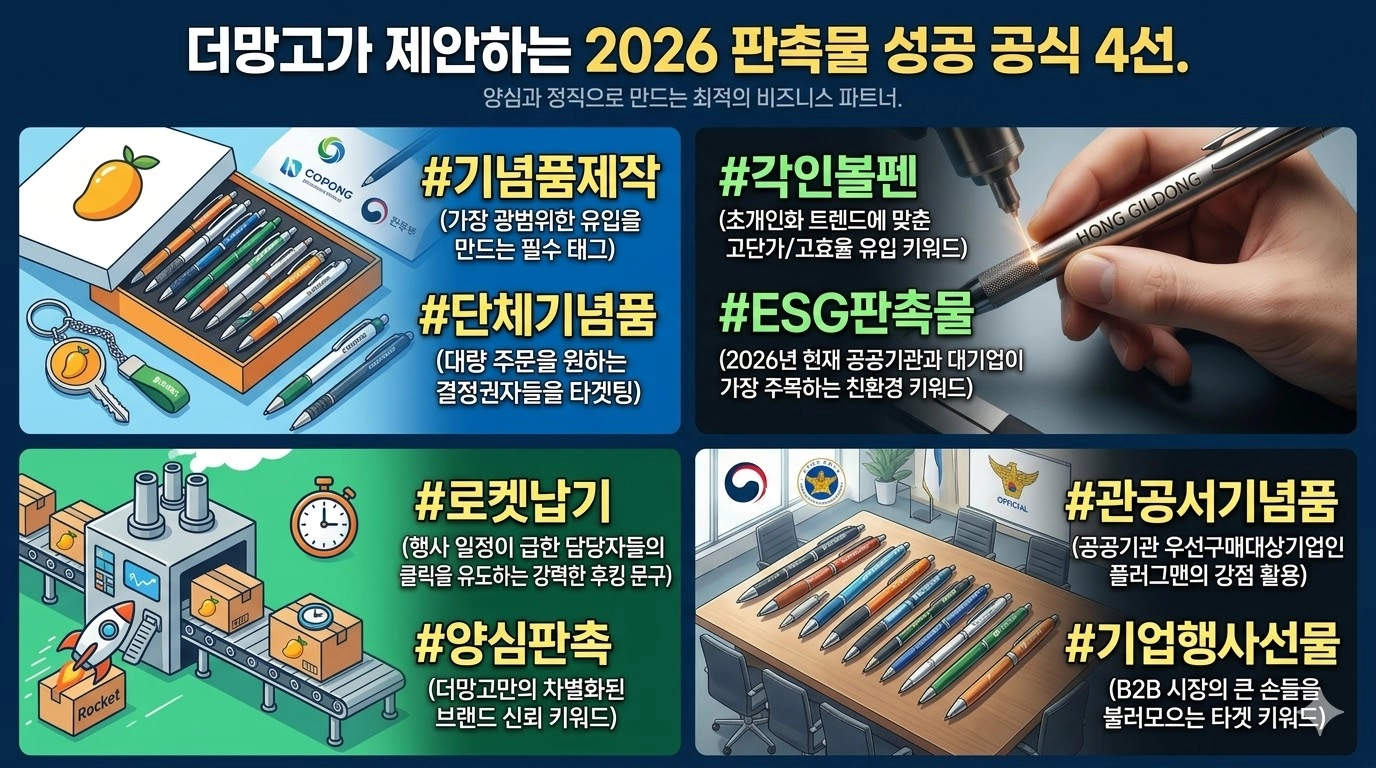 2026 단체 기념품 제작 소량부터 대량까지 완벽 가이드! 버려지지 않는 볼펜 선택법 (ft. 양심판촉 더망고)