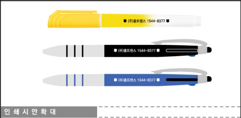밝은 볼펜 (화이트, 파스텔 등): 기업의 CI(로고 색상)를 그대로 살리거나, 검은색/남색 등 어두운 색상으로 인쇄해 시인성을 높입니다.