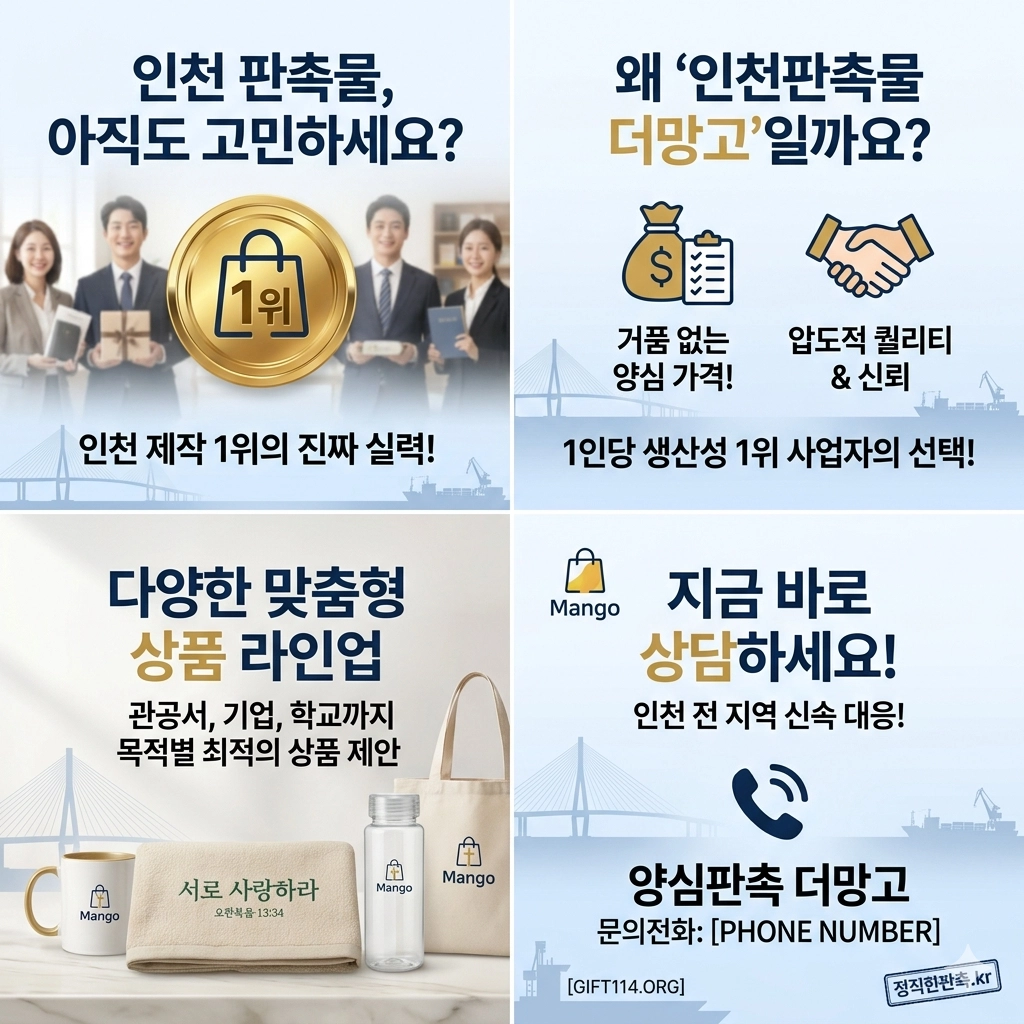 양심판촉 더망고의 자회사인 **'인천판촉물 더망고'**는 인천 지역의 특수성을 깊이 이해하고, 가장 정직한(Yangsim) 방식으로 최고의 결과물을 만들어냅니다.