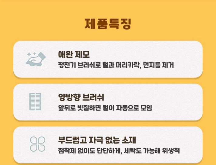 매일 아침 돌돌이(테이프 클리너)만 돌리느라 지치셨나요? 이제는 쓰다듬으면서 털 관리 하세요. 아이와 교감하는 시간은 늘어나고, 집안의 털 날림은 절반으로 줄어듭니다.