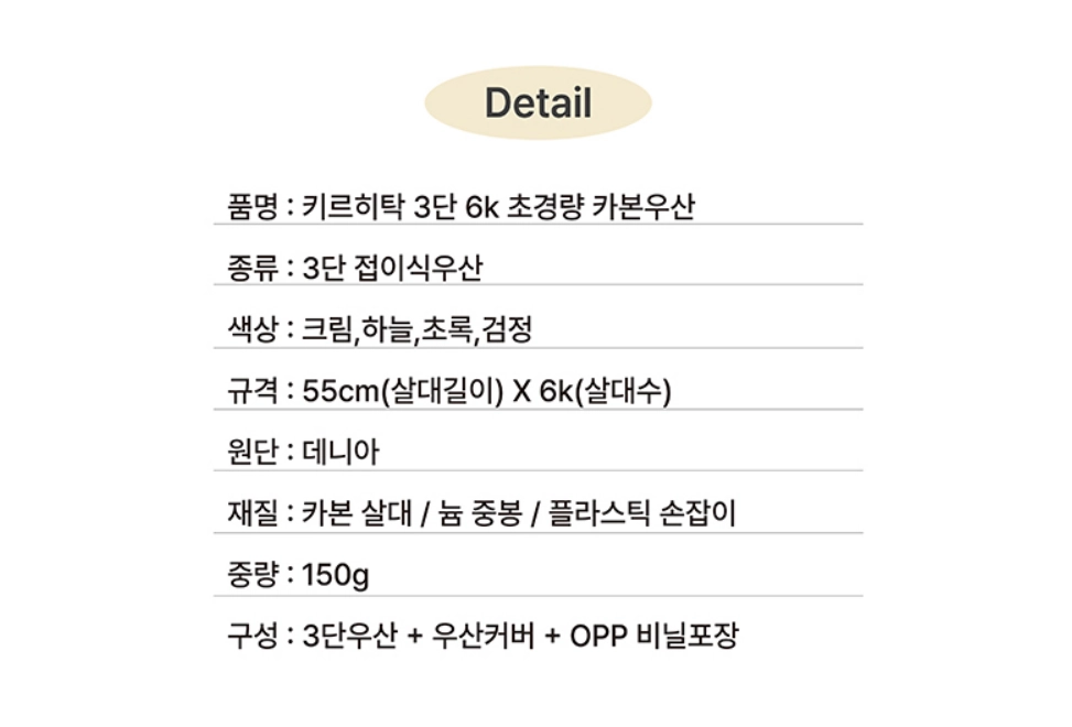 바로 **'키르히탁 3단 6K 초경량 카본 우산'**입니다.
