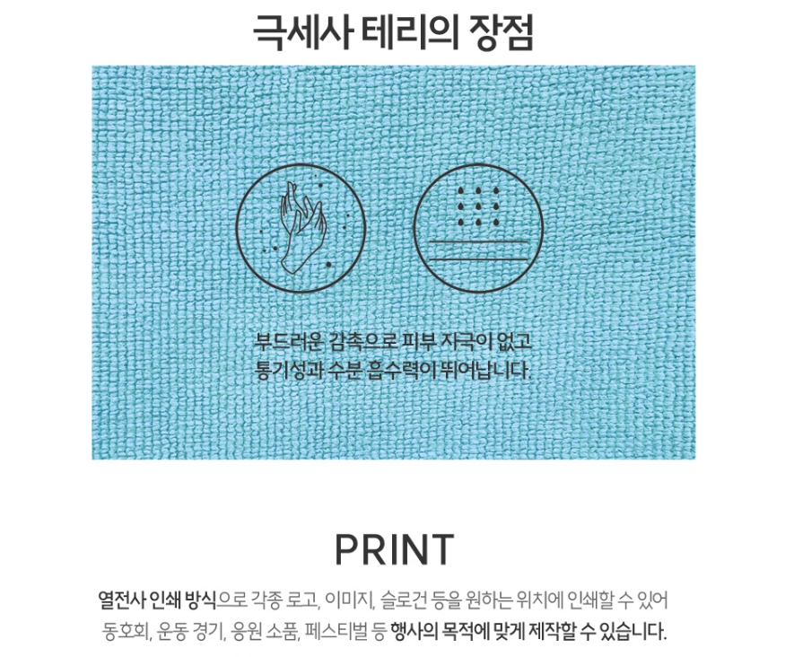 일반 수건과는 차원이 다른 '테리 극세사'-전체 인쇄 가능(양면)