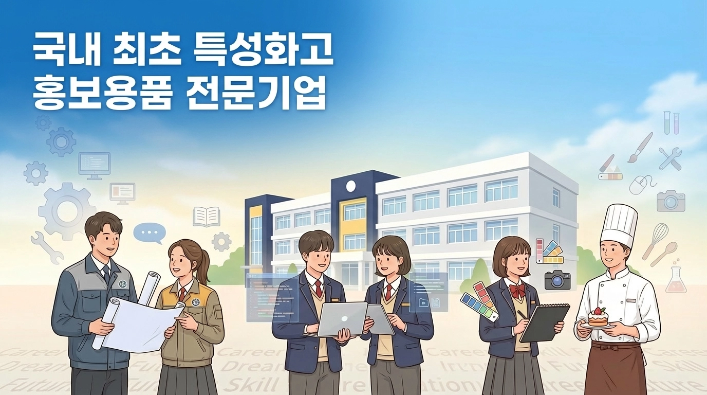 2. 국내 1인당 생산성 1위가 증명하는 '압도적 효율' 취업부와 도제부는 기업 매칭, 현장 실습 관리 등으로 선생님들이 눈코 뜰 새 없이 바쁘십니다. • 빠른 피드백과 납기: 저희는 국내 1인당 생산성 1위 사업자입니다. 이는 불필요한 절차를 생략하고 핵심에 집중하는 초고효율 시스템을 갖췄음을 의미합니다. 카톡(southkoreaking, yunaldo45) 한 번으로 시안부터 견적까지 일사천리로 진행되어 선생님의 업무 시간을 아껴드립니다.정직한 가격(양심판촉): 생산성이 높다는 것은 같은 예산으로 더 높은 퀄리티의 제품을 뽑아낼 수 있다는 뜻입니다. 학생들을 위한 소중한 예산을 가장 가치 있게 사용하는 방법입니다. 3. 전국 특성화고 납품 실적으로 쌓인 '필승 아이템' 데이터 어떤 홍보물이 취업 박람회에서 인기가 많았는지, 어떤 기념품이 협약 기업체 반응이 좋았는지 저희는 이미 알고 있습니다. • 맞춤형 큐레이션: "요즘 다른 마이스터고는 어떤 거 하나요?"라는 질문에 바로 답해드릴 수 있는 전국 학교 납품 실적을 보유하고 있습니다. 시행착오 없이 가장 반응이 좋은 아이템(13oz 풀컬러 종이컵, 커스텀 아크릴 키링 등)을 바로 매칭해 드립니다. 4. '취업 성공'을 응원하는 디테일한 구성 취업부는 학생들의 면접과 포트폴리오 관리가 핵심입니다. • 면접/취업 키트: 면접에 필요한 비즈니스 필기구 세트, 포트폴리오를 담을 고사양 USB, 합격 기원 문구가 담긴 맞춤형 티슈 등 취업 프로세스에 최적화된 패키지 제작에 강점이 있습니다. 학생들에게는 감동을, 기업에는 준비된 인재라는 인상을 심어줍니다. 부서별 추천 특화 아이템부서추천 품목기대 효과도제부산업용 멀티툴, 커스텀 안전 굿즈예비 기술인으로서의 자부심 고취마이스터부고사양 보조배터리, 프리미엄 다이어리정예 기술 영재에 걸맞은 브랜드 가치취업부면접용 키트, 기업 방문용 13oz 종이컵 세트성공적인 취업 성공 및 기업 네트워크 강화