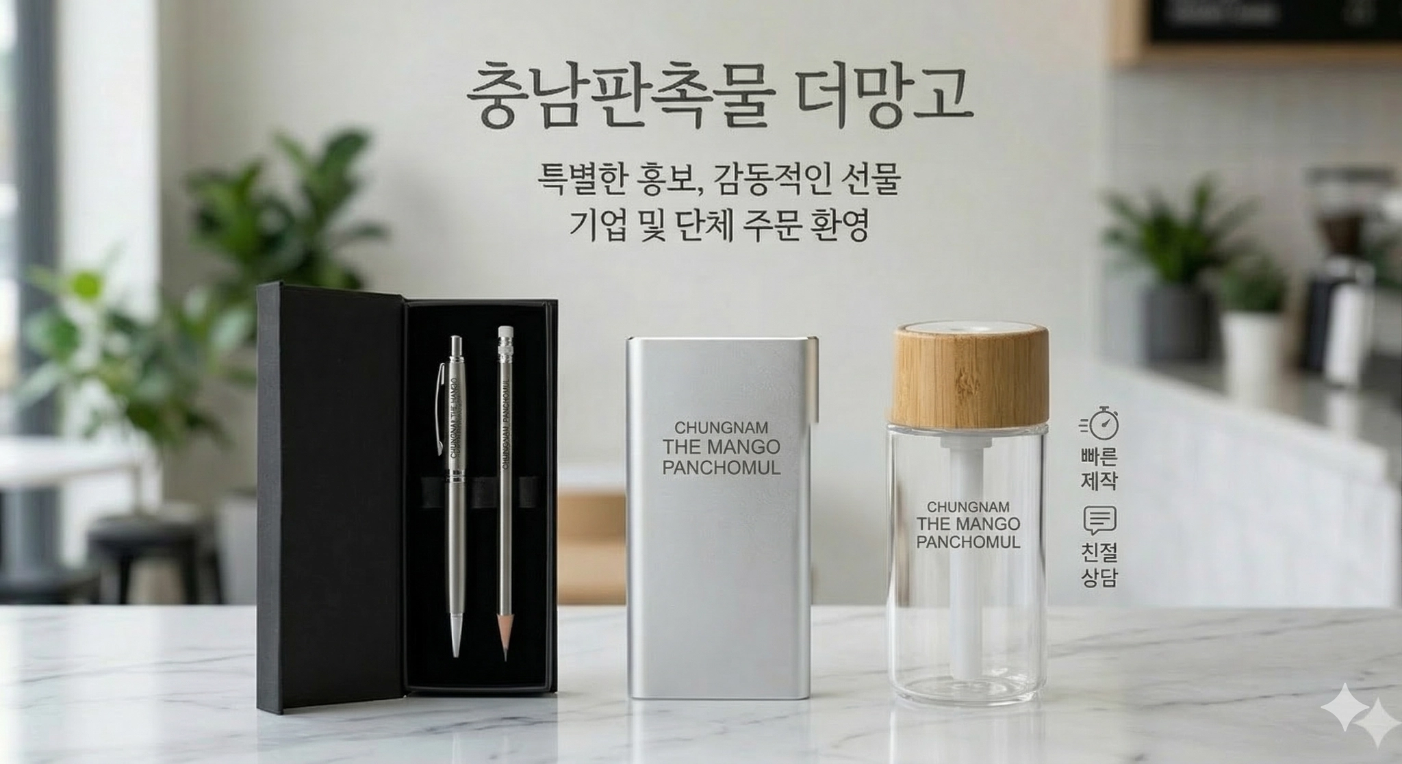 받는 분의 일상에 가치를 더하는 선물, 충남판촉물더망고가 함께 고민하겠습니다.