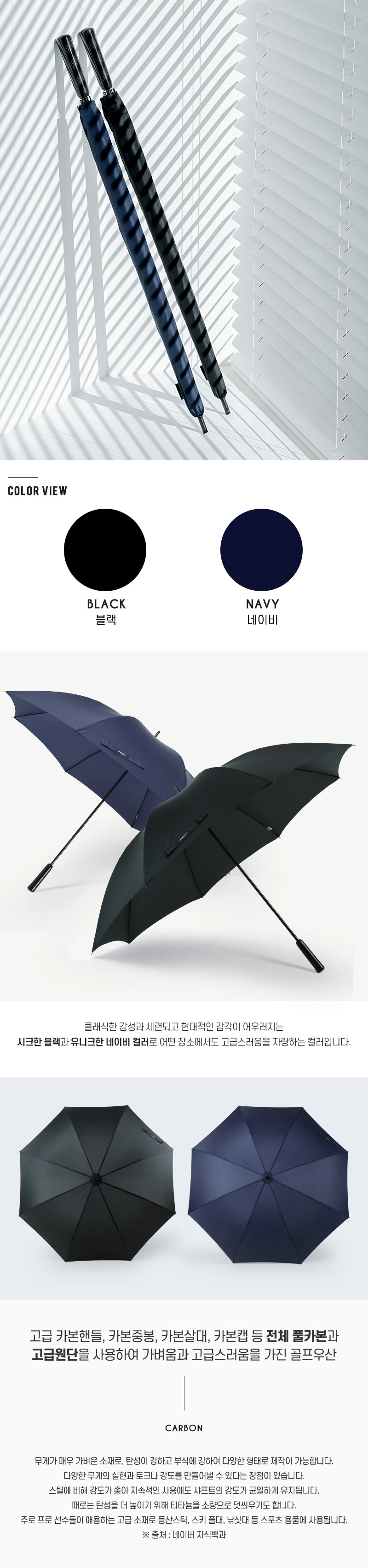 1. 압도적인 가벼움, '풀카본'의 마법 '풀카본(Full Carbon)'은 손잡이, 살대(K), 기둥(Shaft)까지 모두 카본 섬유로 제작되었다는 뜻입니다. 카본은 같은 부피의 강철보다 5배 강하면서도 훨씬 가볍고, 탄성이 뛰어나 바람을 유연하게 받아칩니다. 미치코런던 M050은 75cm 대형 골프우산임에도 놀라울 만큼 가벼워, 장시간 필드에서도 부담이 적습니다.